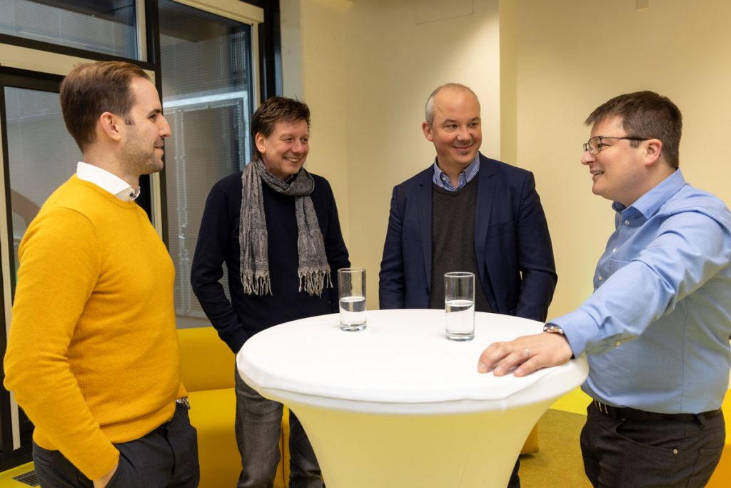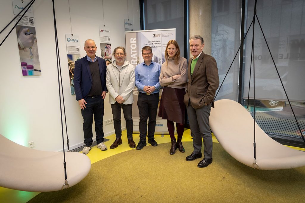 Jakob Pieber (Predicting Health), Heimo Müller (Med Uni Graz), Albin Skasa (Medaia), Anke Dettelbacher (ZWT) und Alexander Rosenkranz (Vizerektor Med Uni Graz), v. l., Fotos: Lunghammer