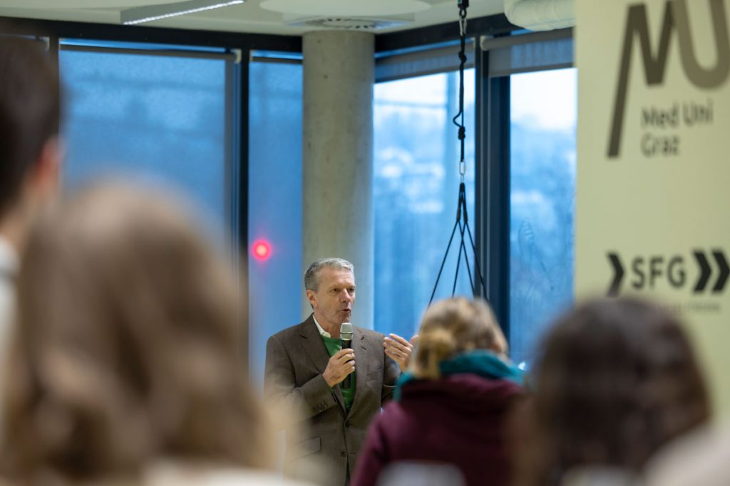 Vizerektor Alexander Rosenkranz von der Med Uni Graz betonte in seinem Impuls die zentrale Bedeutung medizinischer Innovationen für den gesellschaftlichen Fortschritt. Technologien wie maschinelles Lernen und KI seien entscheidende Treiber. Ihr Potenzial sei enorm und könne auch viel Entlastung bringen, doch es gelte auch, nicht zu zögern: Wer zu lange warte, verliere den Anschluss.