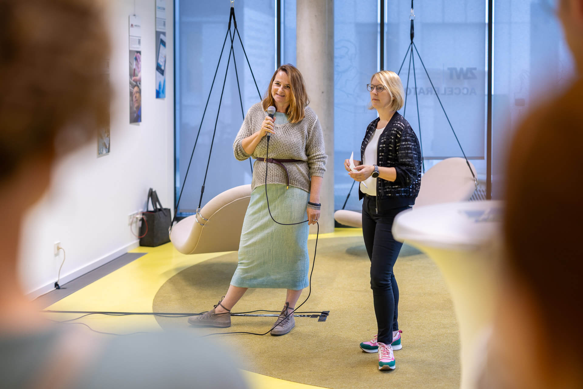 Was tut sich in der ZWT-Community? Wo gibt es Möglichkeiten anzudocken? Und welche Fördermöglichkeiten könnten interessant sein? Das aktuelle ZWT-Netzwerkfrühstück lieferte jede Menge News und Antworten und brachte zahlreiche interessierte Teilnehmer:innen im Erdgeschoß des ZWT ACCELERATOR in gemütlicher Frühstücksatmosphäre zusammen.